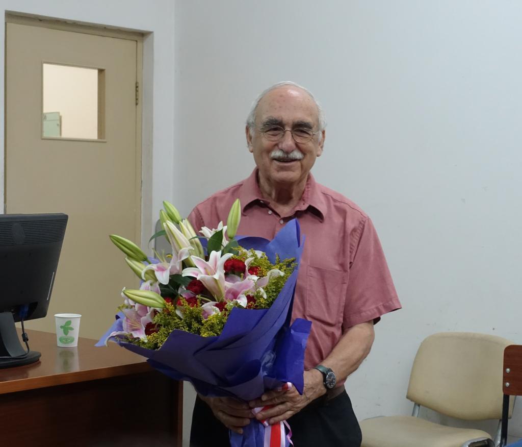图书馆工作人员向欧弗·巴尔-约瑟夫教授敬赠鲜花