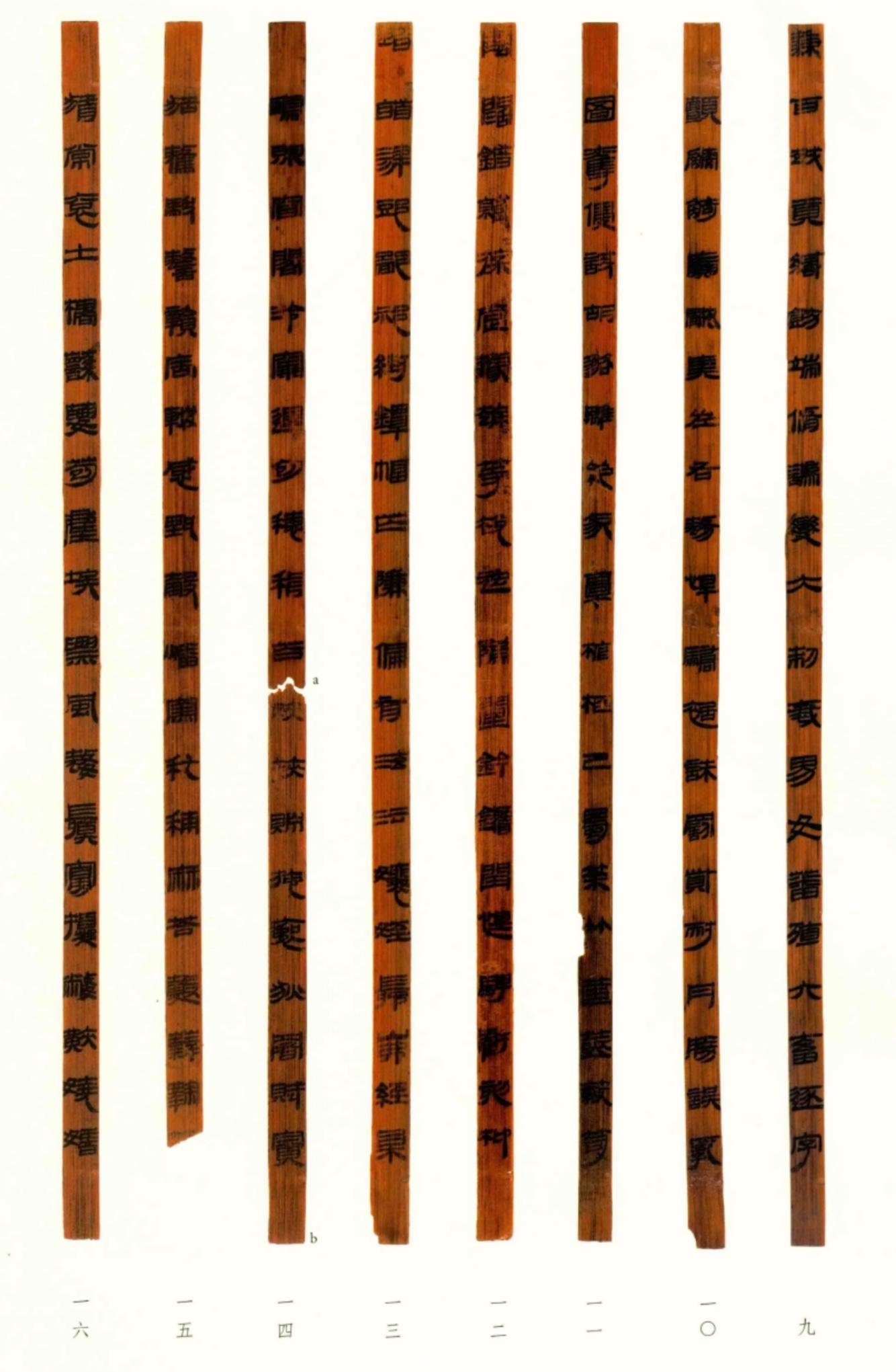 [32 Zhang Cunliang and Ju Hung, however, do not agree with this argument, because the handwriting of the Fuyang copy shows signs of the clerical script used during the Han. They therefore suggest that the Fuyang copy may have been one of the early Western Han copies, rather than the copy handed down directly from Qin; Zhang – Ju 2015, pp. 239–240.