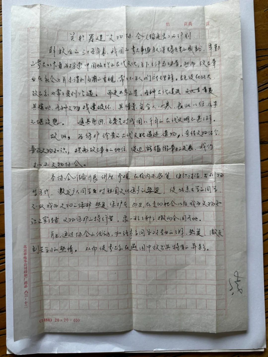 图一 刘本安执笔的筹建“文物协会”计划书