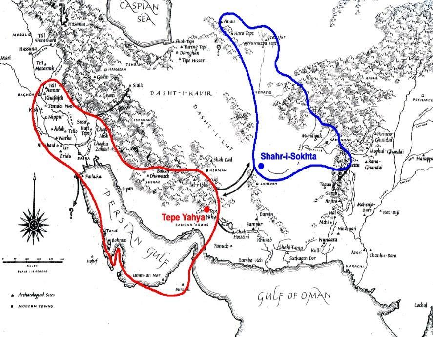 1967至1975年间,美国考古学家兰博格—卡尔洛夫斯基(C. C. Lamberg-Karlovsky)和意大利考古学家托希(Maurizio Tosi)通过对亚赫亚丘(Tepe Yahaya)与索赫塔城(Shahr-I Sokhta)的考古发掘与比较研究,揭示了公元前3000年前后,伊朗高原西部与东部的文化互动和交流轨迹。
