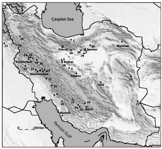 (其中4为Darband洞穴遗址,8为Ganj Par遗址)