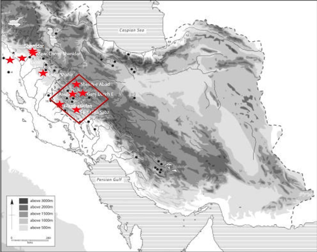 伊朗新石器时代过渡阶段重要遗址分布图
