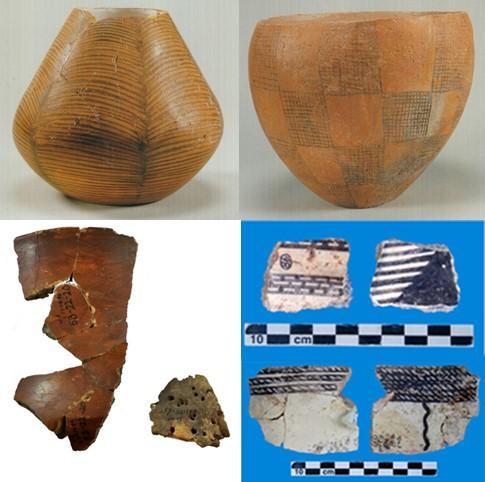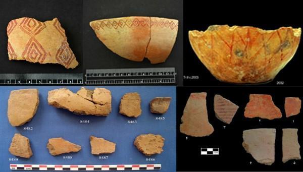 (上排:哲通文化陶器;下左:里海沿岸的软陶;下右:伊朗高原北部的彩陶)