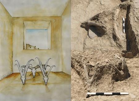Sheikh-e Abad遗址出土的山羊头骨祭祀场所及复原想象图