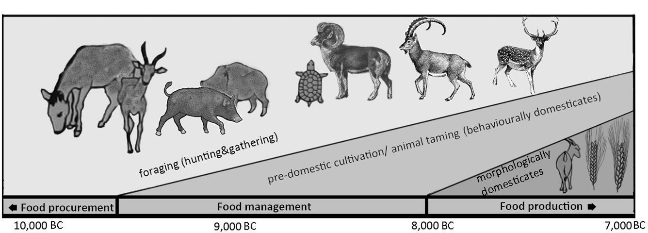 (从狩猎采集到完全的农业经济经历了漫长的过渡时期)