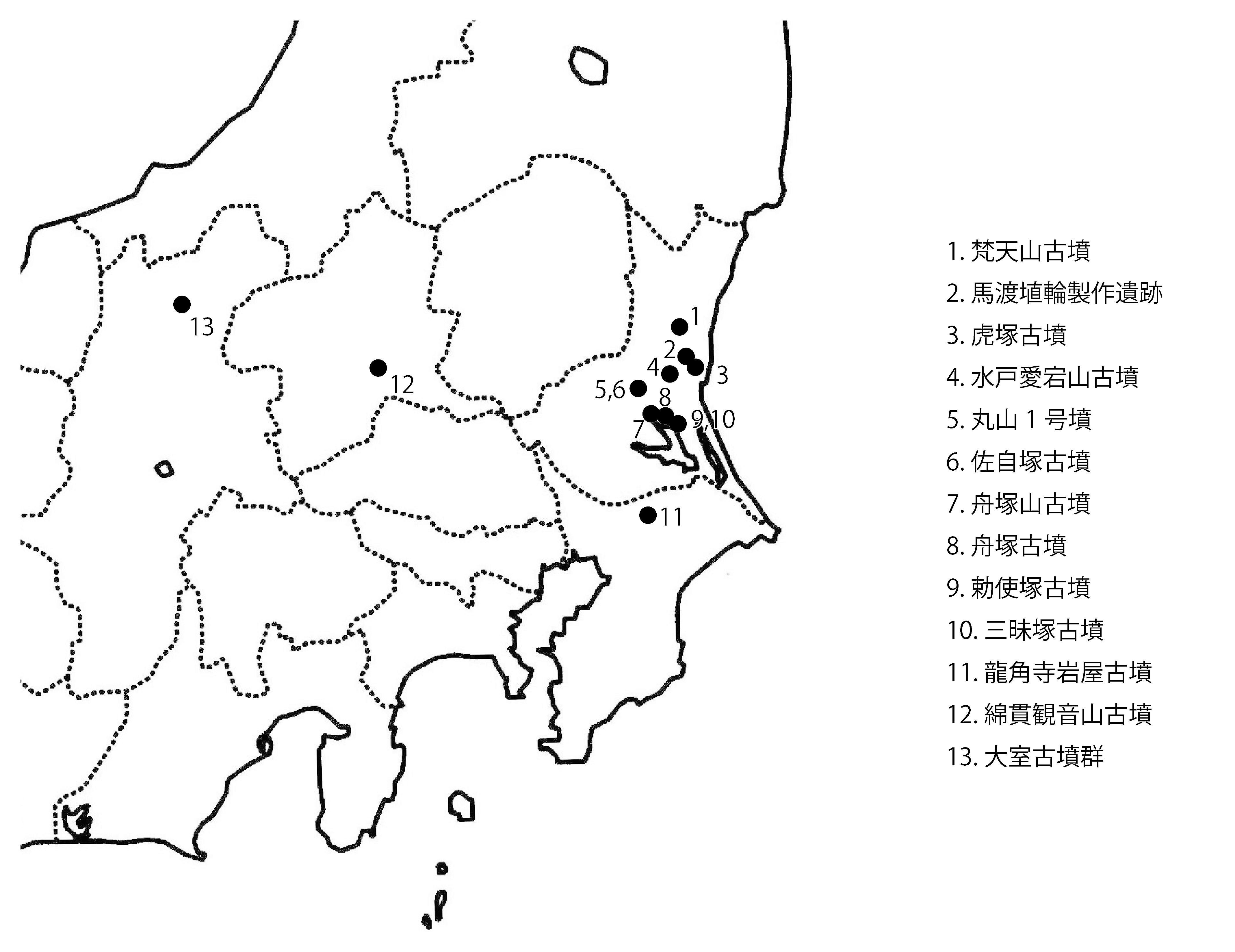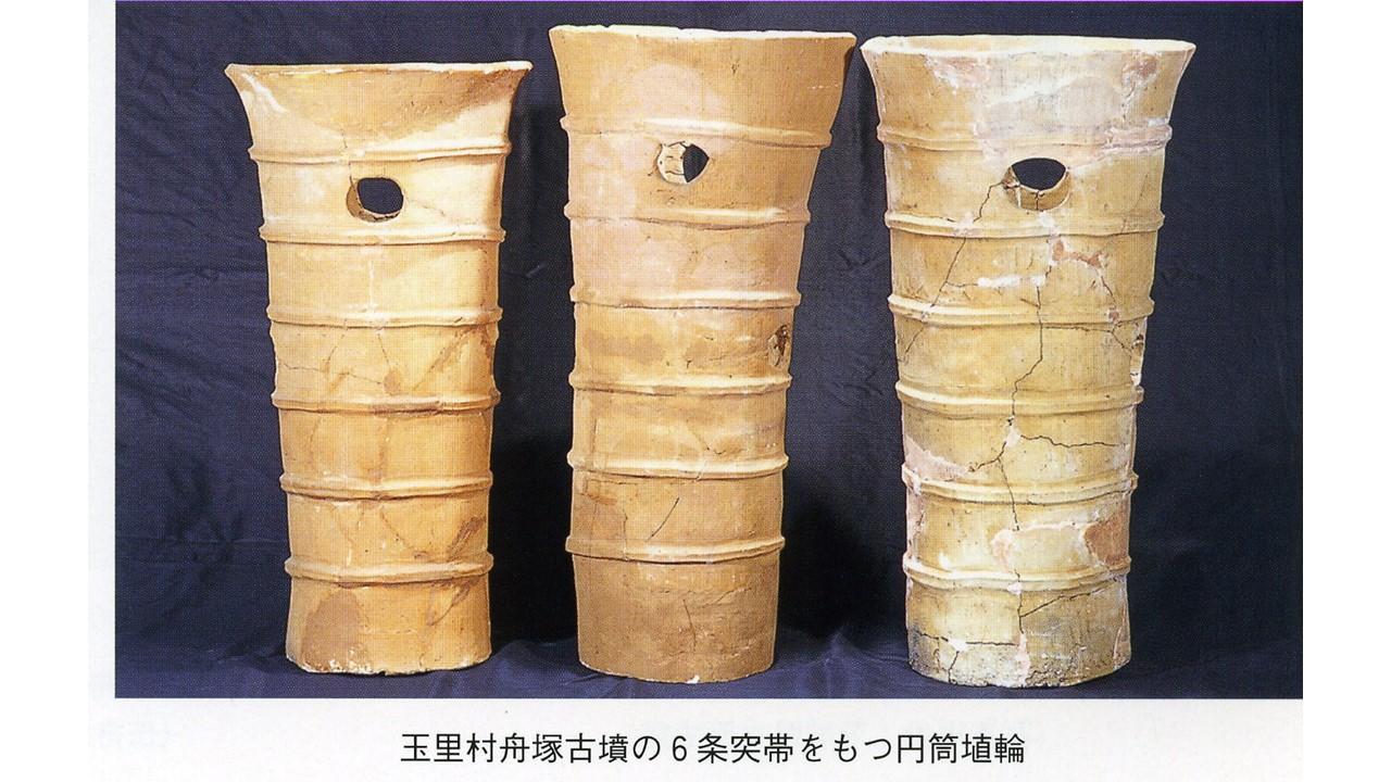 在上述墓葬中,未被盗掘的5世纪最后25年的三昧塚古坟和6世纪最后25年的绵贯观音山古坟皆为前方后圆形坟。进入6世以后,中央大和地区以及日本其他地区中,前方后圆坟的建造基本废止,而关东地区则恰恰相反,前方后圆坟在此时开始盛行。这一现象可能意味着,进入6世纪后,关东地区终于理解了前方后圆坟在象征墓主生前社会地位上的意义。另外,舟塚古坟出土的圆筒埴轮等器物暗示了与中央的强烈关系,是一个非常珍贵的例子。