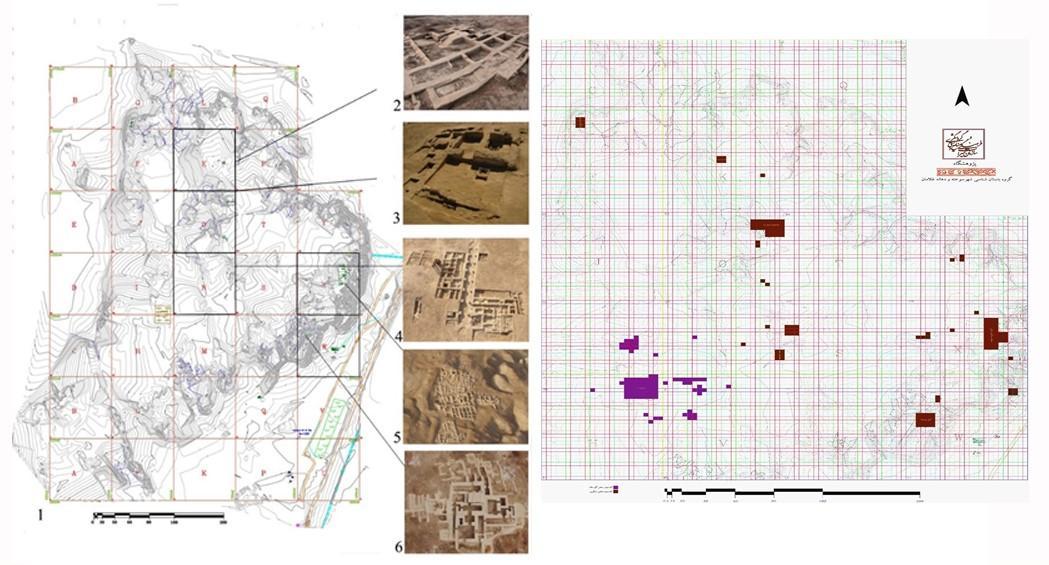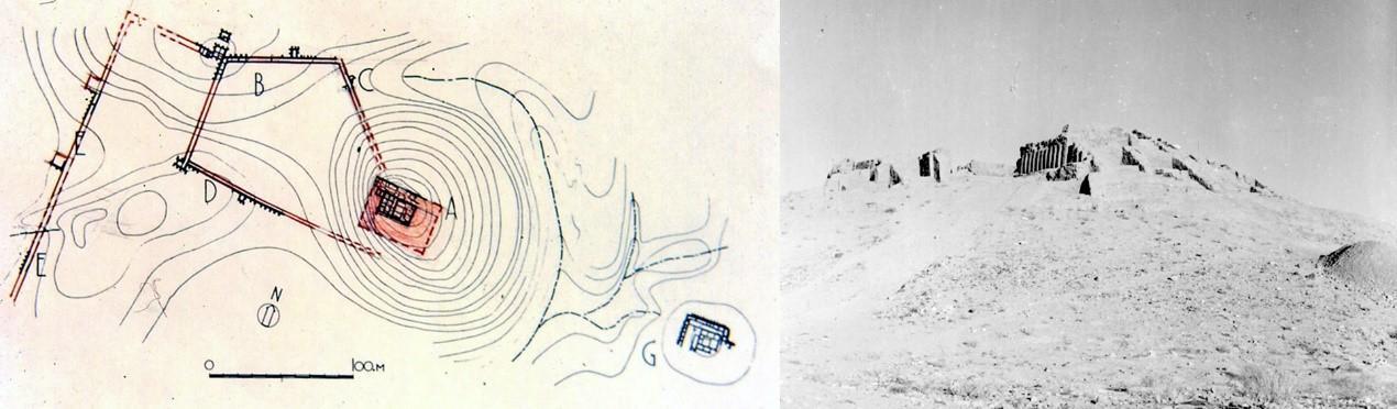 Mundigak遗址主要遗迹分布图及宫殿神庙区照片