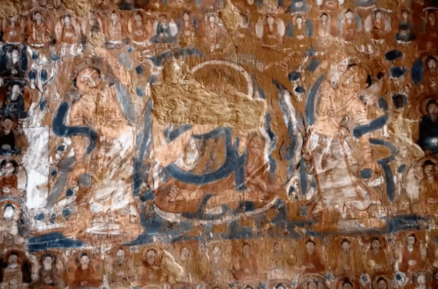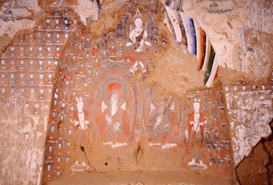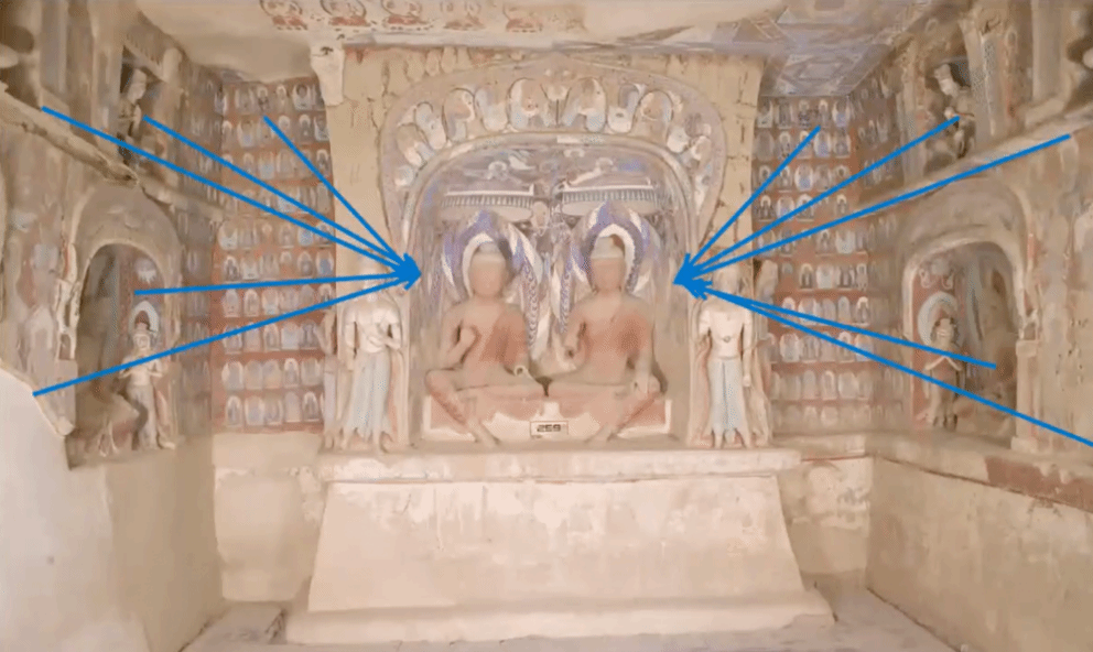 马蹄寺千佛洞第8窟中心柱南面下层龛绘制弥勒、释迦多宝和千佛壁画,这也是云冈第二期洞窟中法华图像的典型样式,说明在北魏晚期云冈模式已经对河西地区产生深远影响。莫高窟北魏洞窟主要有第259、254、251、257、263、260、431等窟,年代约在太和时期即477-500年,其开凿或与平城贵族穆亮任职敦煌镇都大将有关。这一时期的洞窟特征如中心柱、壁面列龛、主尊二佛并坐等,既受到云冈模式的影响,同时又有所发展。例如,莫高窟北朝法华图像出现于第259、285、428、461窟,但不同洞窟的图像表现形式各异,组合也不尽相同。此外,石窟中的其他图像元素如降魔成道与鹿野苑初转法轮、乘象入胎与逾城出家等以及河西地区出土的佛教遗物,也表现出云冈模式对河西地区的持续影响。