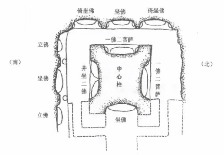 北魏时期,从平城经陇东、陇南至河西地区存在畅通的交通线路,由此奠定平城地区佛教艺术的广泛传播。陇东地区的泾川王母宫石窟、庆阳楼底村1窟以及子午岭周围的张家沟门、保全寺、红渠沟口、观音崖、马勺场等龛窟不仅与平城佛教关系紧密,同时也和陕西地区的老君寺、川庄等早期石窟有密切关联。例如,泾川王母宫石窟由来自平城的抱嶷开凿,其中心柱三面雕刻坐佛,一面雕刻二佛并坐,而云冈石窟第6窟的中心柱则是两面坐佛,一面二佛并坐和一面交脚弥勒的法华图像组合。因此,王母宫石窟既模仿云冈第6窟雕凿,又在此基础上对其进一步发展。