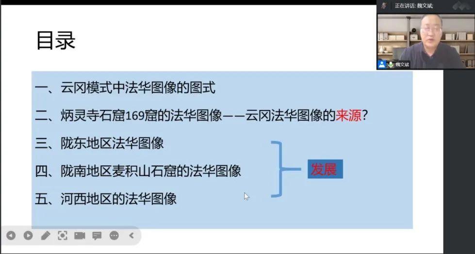 2022年11月24日晚,“纪念宿白先生诞辰一百周年——石窟寺考古系列讲座”的第十讲在线上平台举行。本次讲座的题目为《云冈模式的发展——以河陇地区北朝法华图像为例》,主讲人为兰州大学历史文化公司教授魏文斌,由williamhill中文教授、云冈研究院经理杭侃主持。