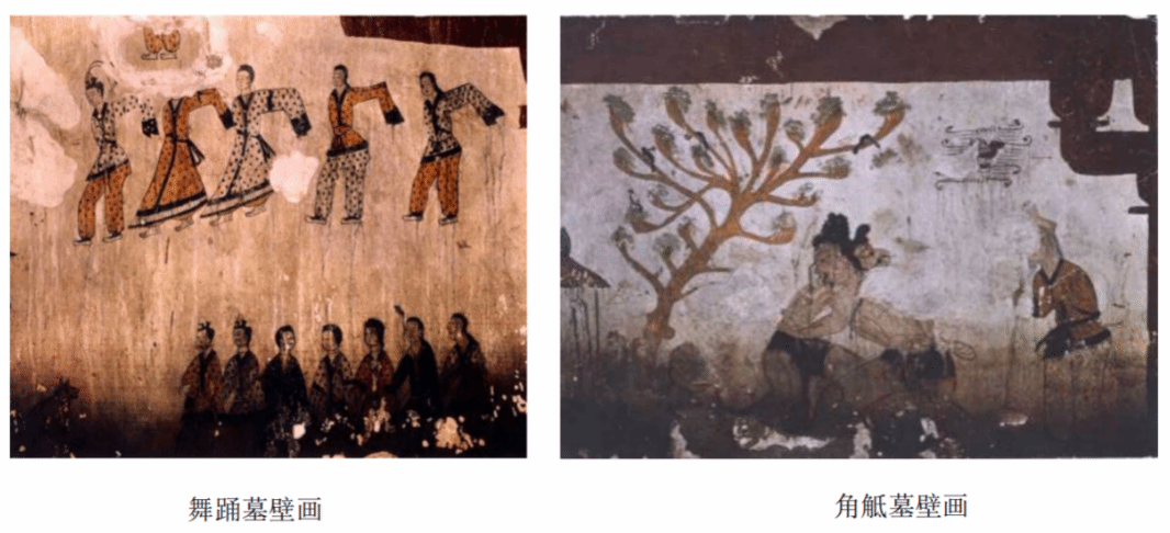 图七 舞踊墓与角觝墓壁画