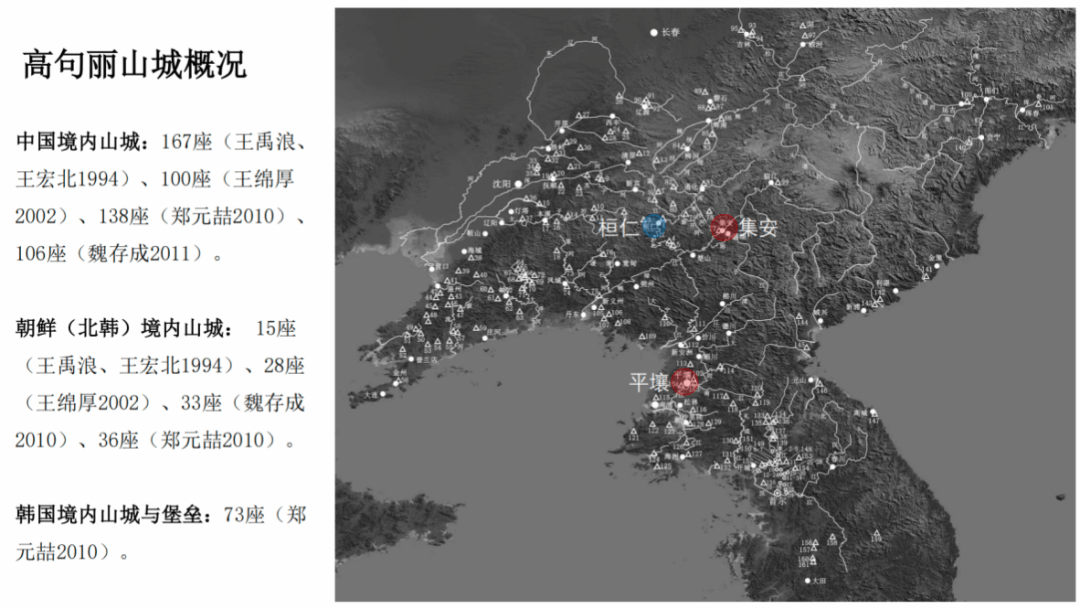 目前,中国境内已发现百余座高句丽山城,朝鲜境内约有30座,韩国境内则以堡垒为主,绝大多数未经考古发掘。今平壤和集安是比较确定的高句丽王城所在的位置。