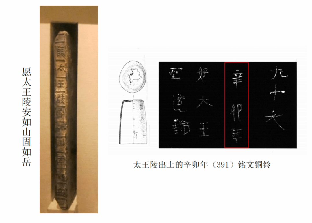 图六 太王陵出土铭砖与铜铃