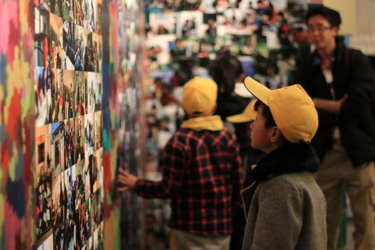 受邀前来的平粮台小员工正在展览照片中寻找自己