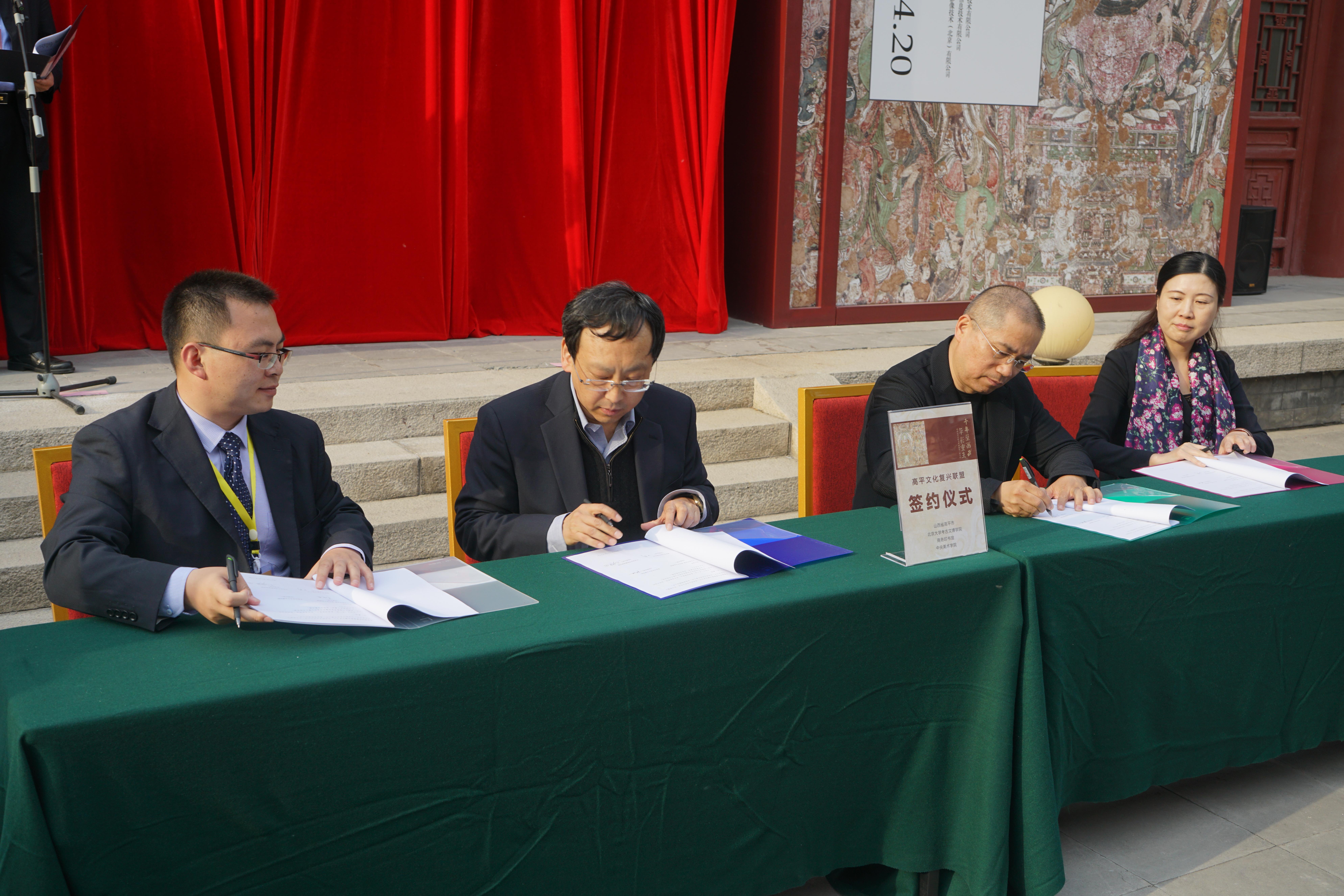 随后,“高平文化复兴联盟”四方代表:williamhill官方网站经理杭侃,商务印书馆副总经理王齐,中央美术公司修复研究院经理王颖生,高平市宣传部长牛晓明进行签约仪式,随后代表们与高平市市委书记范兆森、谢辰生先生为展览开幕并合影留念。