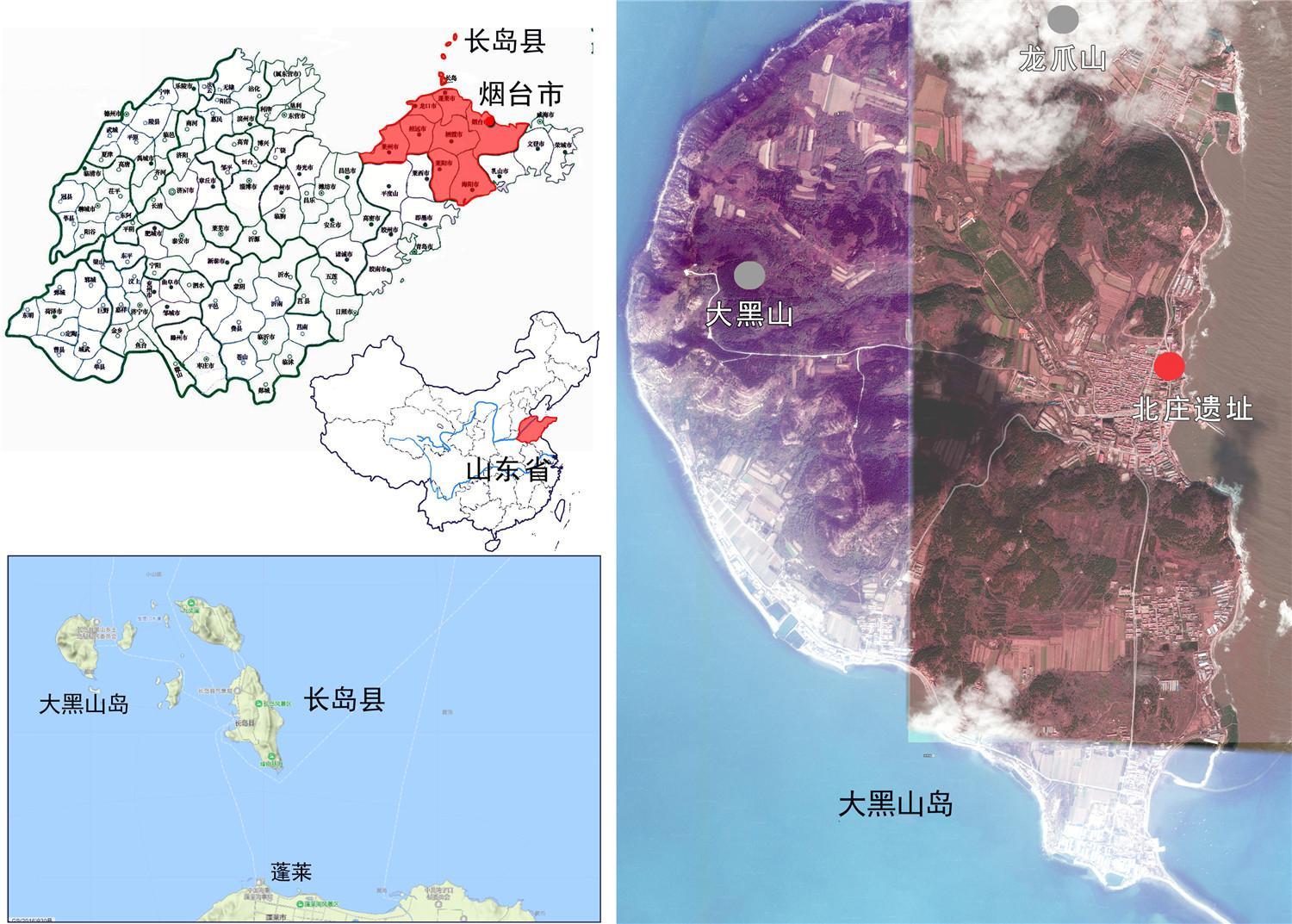 北庄遗址(位于海边崖壁之上,发掘后已回填保护)现状鸟瞰