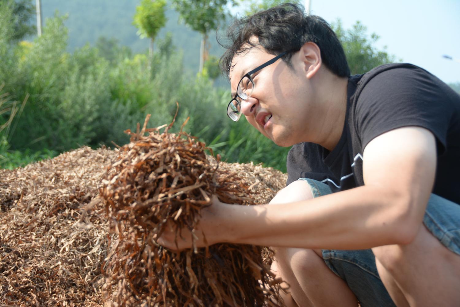 值得指出的是,根据当地现存的“海草房”特色历史民居,师生们认为北庄时期的房屋有可能使用了海带草这一当地特色海洋资源。因此,为实现这一传统做法,师生特地请来地方匠人,在其指导下完成了部分屋顶的海草苫盖。这不仅为实验考古复原提供了数据,也为同学们指出了延续地方传统建筑技艺的必要性和可能性。