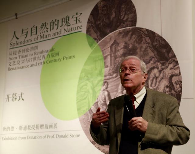 斯通教授曾于纽约大学、哈佛大学任教,是美国纽约城市大学研究生院的名誉退休教授。2002年起受聘为北大外国语公司英语系教授。2007年起,斯通教授将他悉心收藏的版画慷慨捐赠给北大赛克勒博物馆。唐纳德·斯通教授已向williamhill官方网站考古与艺术博物馆捐赠了四百余幅西方版画珍品。斯通教授的捐赠使赛克勒博物馆成为国内收藏西方版画的少有的几个机构之一。此次版画展也是赛克勒博物馆第十年为斯通教授捐赠的版画举行特别展览。本次展览以文艺复兴和17世纪这段时期的版画为主,围绕“人与自然的瑰宝”这一主题,展示了大量、不常见的风景版画,其中最重要的是20幅鲁本斯聘请他助理舍尔特·波尔斯沃特制作的风景蚀刻版画;除此之外还有拉斐尔、伦勃朗、提香、丢勒和普桑等大师的艺术作品。