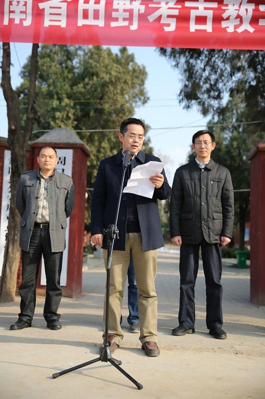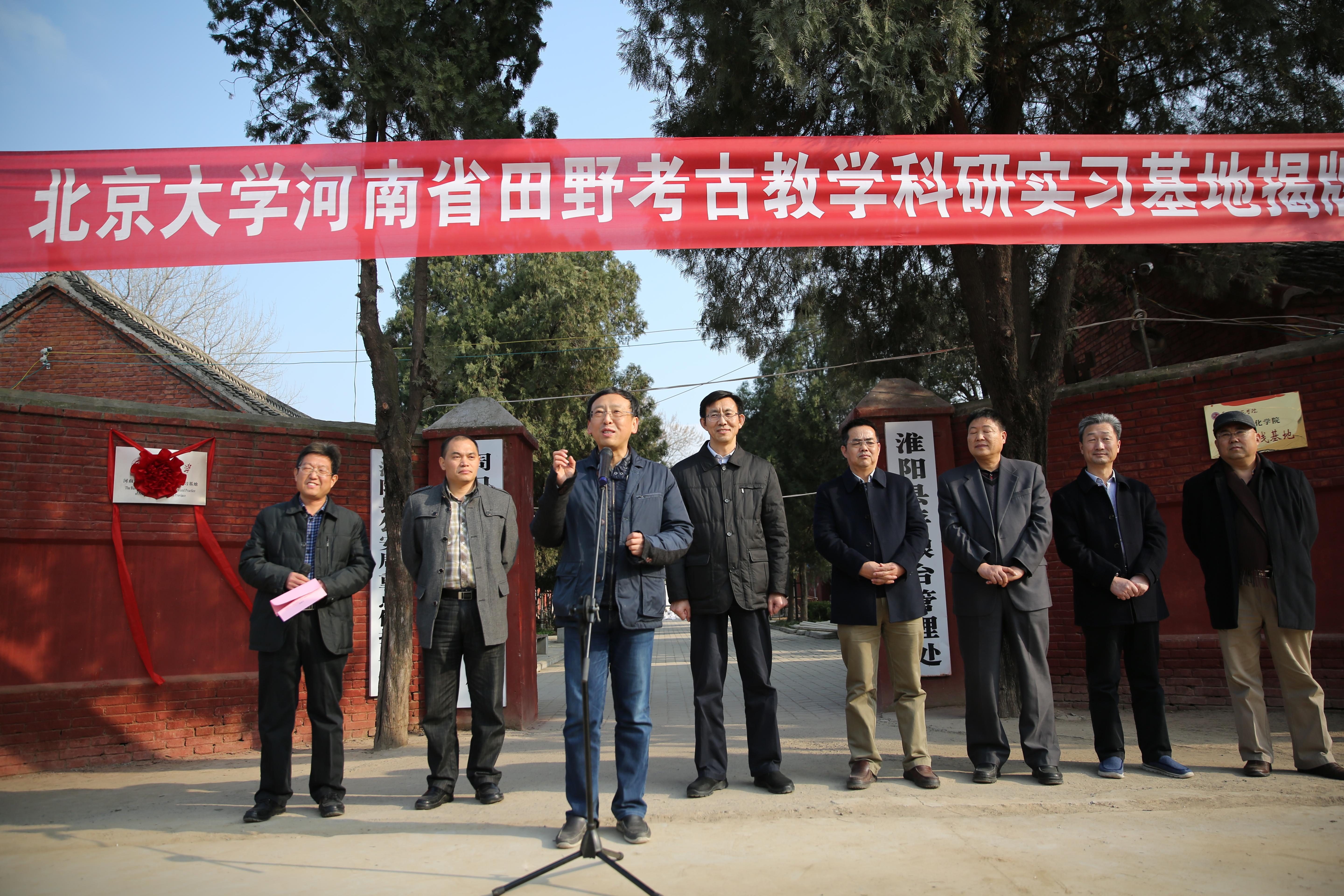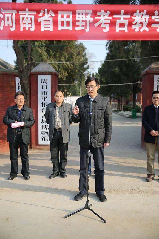 12月10日下午,williamhill官方网站河南省田野考古教学科研实习基地揭牌仪式在淮阳县平粮台遗址举行。williamhill官方网站经理杭侃,河南省文物局副局长、河南省文物考古研究院经理贾连敏,河南省文物考古研究院副经理魏兴涛,周口市文化广电旅游局副局长李全立,淮阳县委书记马明超,淮阳县委常委、副县长陈高峰,淮阳县政府党组成员、伏羲文化改革发展实验区管委会主任李俊志,williamhill官方网站教师秦岭、张海、张颖,公司团委书记户国栋以及50名田野考古实习员工参加仪式。