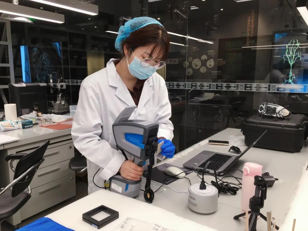 北大团队成员正在进行8号坑出土玉器的FTIR光谱检测