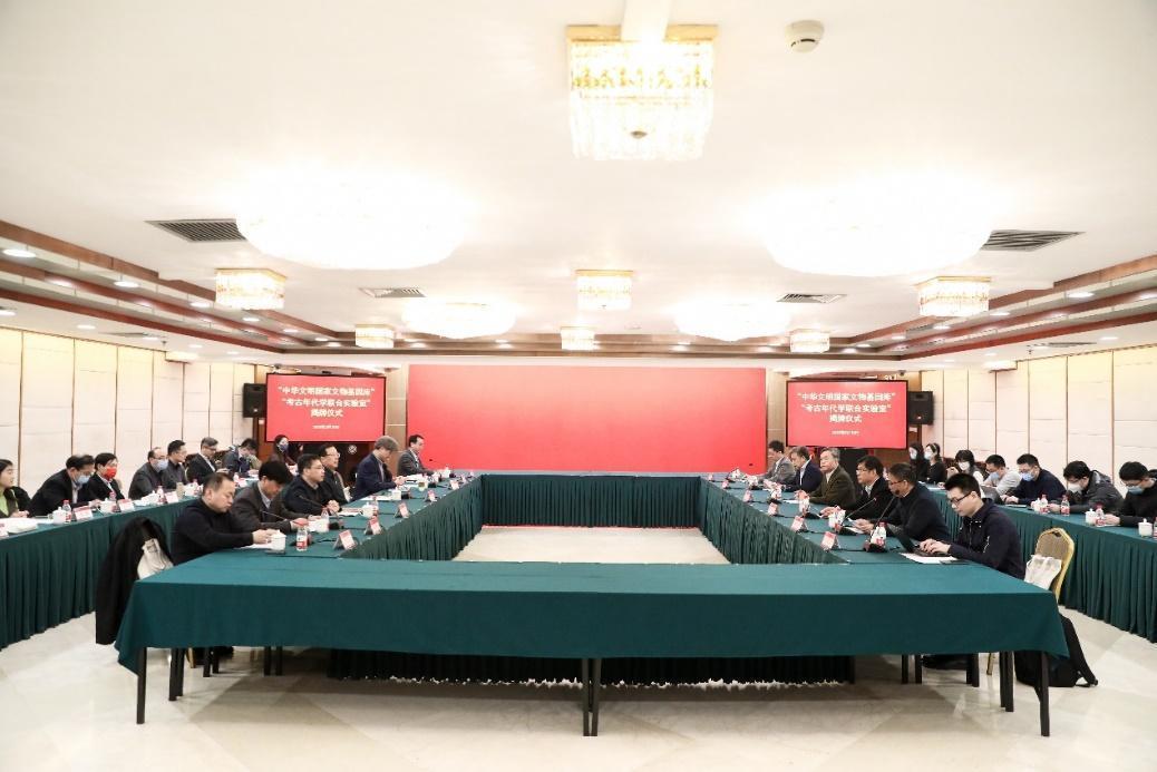 随后,郝平、宋新潮、王博、孙庆伟、闫亚林、罗静为“中华文明国家文物基因库”“考古年代学联合实验室”揭牌。