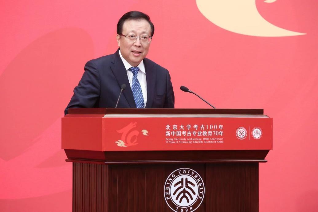 郝平指出,在现代考古学的百年征程中、在新中国考古专业教育的探索实践中,北大一直发挥着重要的引领作用。在团队建设、科学研究、人才培养、文化传承等方面独树一帜,硕果累累。北大考古始终引领着中国考古学科发展的光辉历程,其成长、发展与壮大的过程,离不开几代师生的励精图治和无私奉献,离不开广大员工的热切关爱,也离不开国家文物局、中国社会科公司考古研究所及各省市考古机构、各兄弟院校考古专业以及社会各界的鼎力支持。