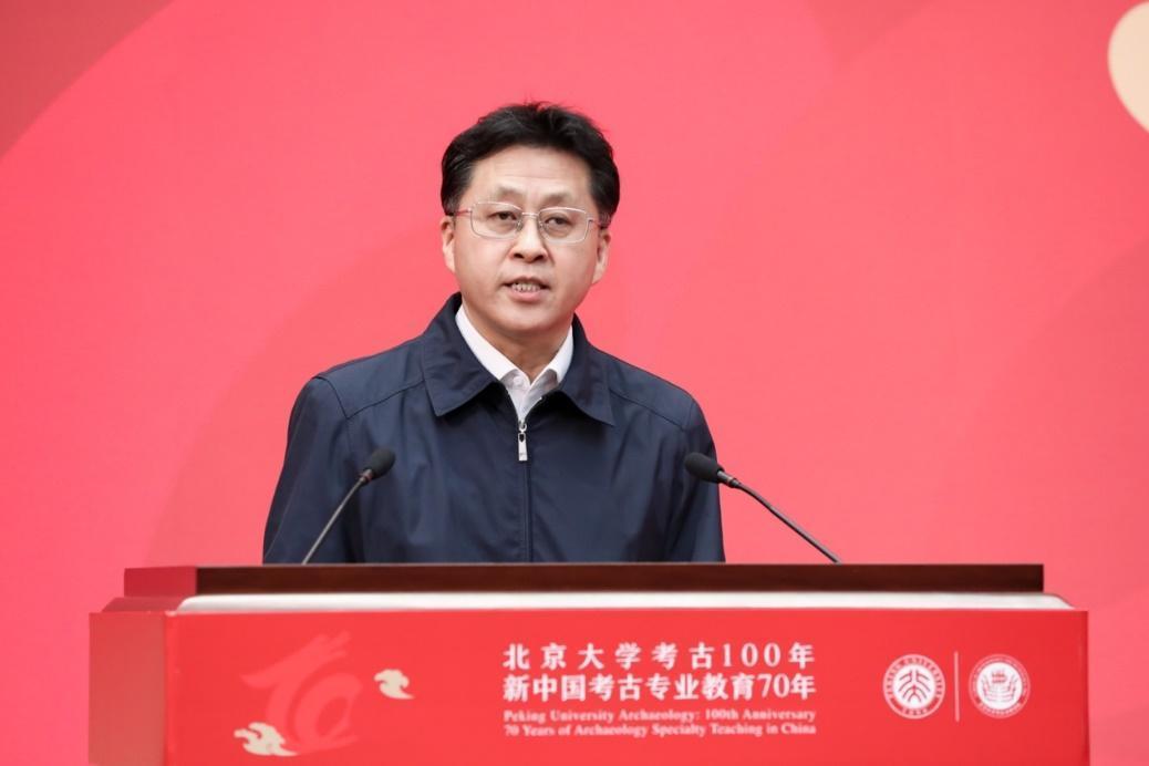 陈星灿在致辞中指出,北大考古是中国考古的一面镜子、一个缩影。一百年来,北大考古在考古团队建设和科学研究等方面作出了重大贡献,为国家乃至世界培养了数以千计的优秀人才,并在考古文博学科的各个领域取得众多一流研究成果,成为名副其实的国际中国考古学的研究中心。他希望北大考古在新时代继续砥砺前行,取得更多更大的考古成果。