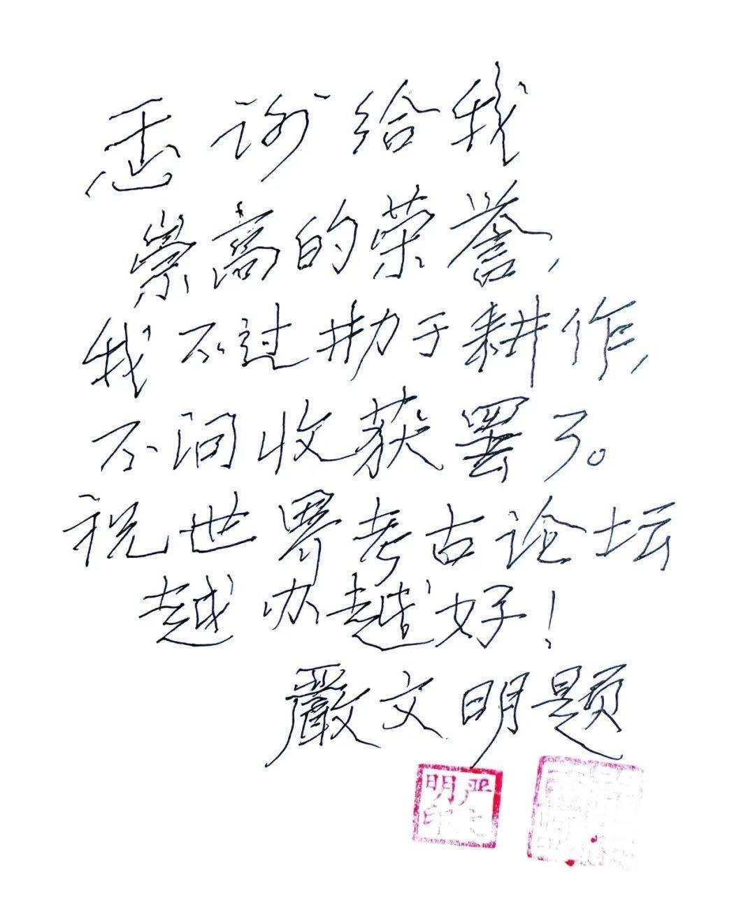 “感谢给我崇高的荣誉,我不过勤于耕作,不问收获罢了。”92岁的严文明先生亲笔写下了感言。
