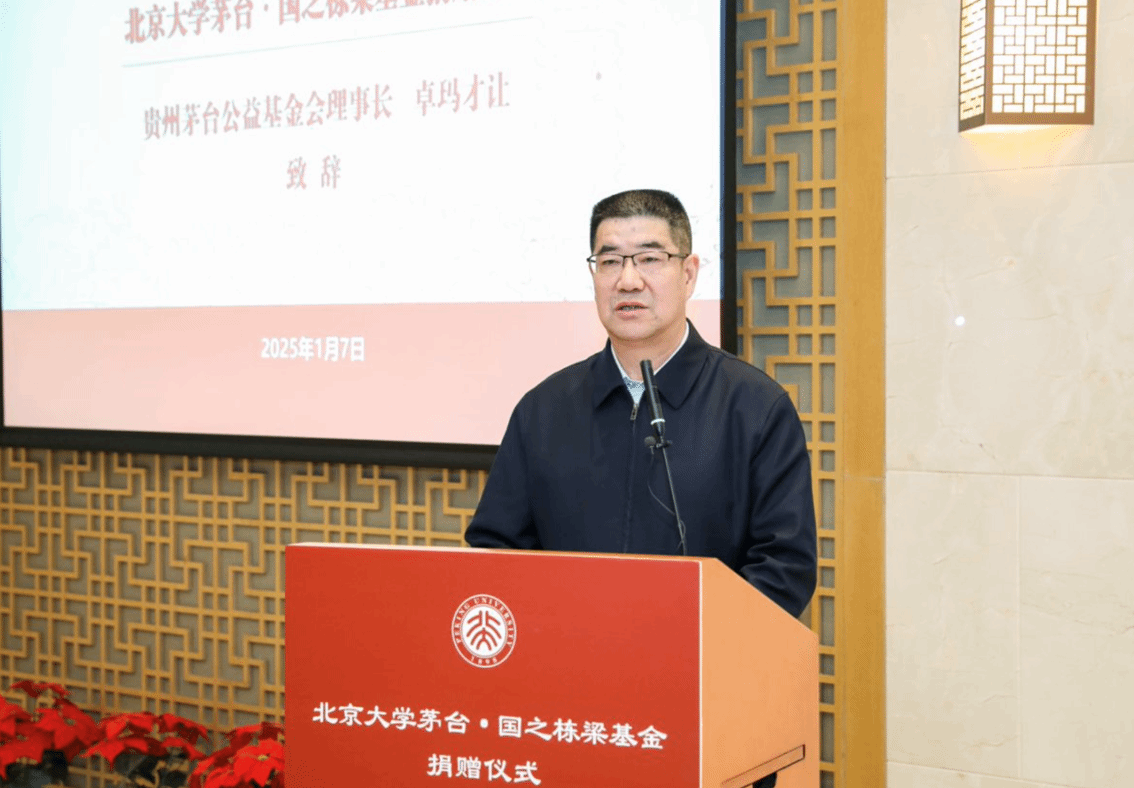 王博对茅台集团和茅台公益基金会对北大的持续关注与支持表示感谢。他表示,茅台品牌具有深厚的历史底蕴,多年来茅台集团在不断开拓创新的同时,始终坚持服务和回馈社会,倾力支持公益事业,体现出企业高度的社会担当与爱国情怀。他指出,此次捐资将为北大考古学科的发展注入新的动力,希望未来双方携手推动北大人才培养和学术研究再上新台阶,也期待茅台集团与北大在更多领域互相促进、共同发展。