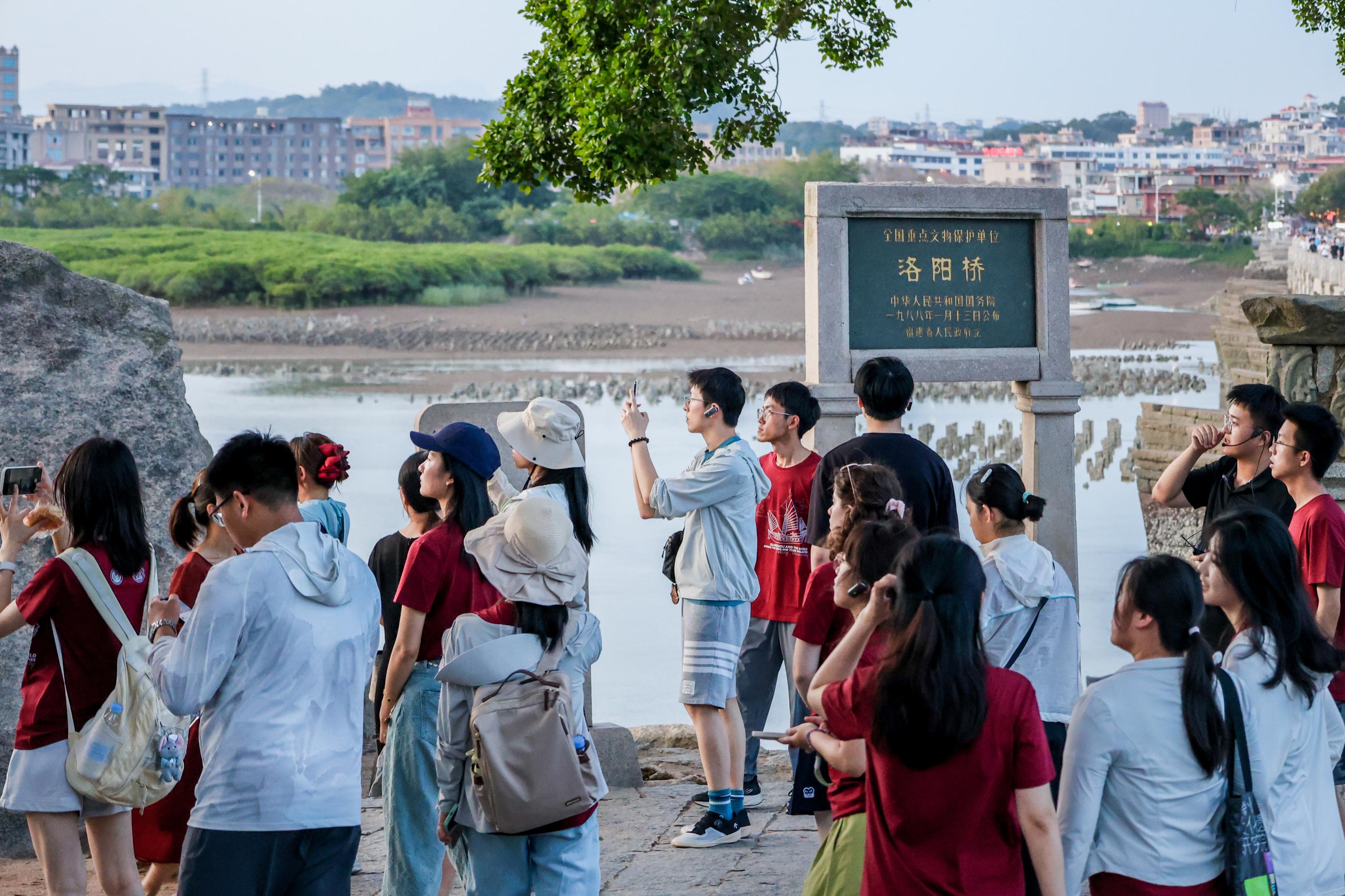 洛阳桥位于泉州洛阳江的入海口处,建成于北宋嘉祐四年(1059年),是我国桥梁史上第一座永久性多孔式滨海大桥。将文献记载与实地观察相结合,同学们对以洛阳桥为代表的泉州乃至中国古代石桥的修造技术有了直观立体的印象,并对洛阳桥作为泉州北上福州乃至内陆腹地的交通枢纽、在泉州水陆复合运输网络发展中的里程碑意义有了深刻的体会。