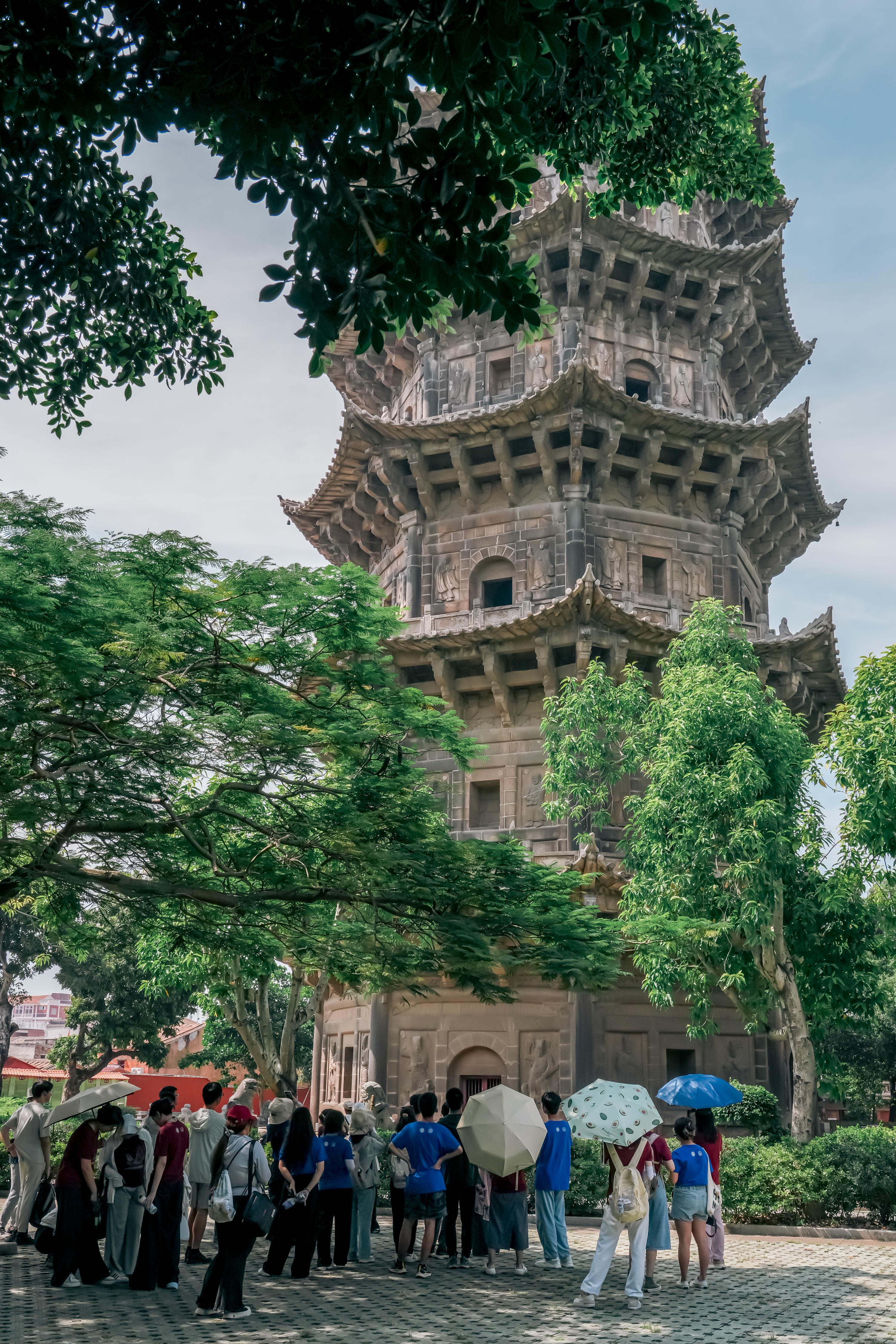 开元寺位于泉州子城西门外,是宋元时期泉州规模最大、官方地位最突出的佛教寺院,同学们穿行于树影摇曳下的中轴与游廊,自东西双塔下注视、观察宋代遗构的建筑风貌,在香火萦绕间聆听彼时繁荣寺院活动与多元文化交往之悠远回音。