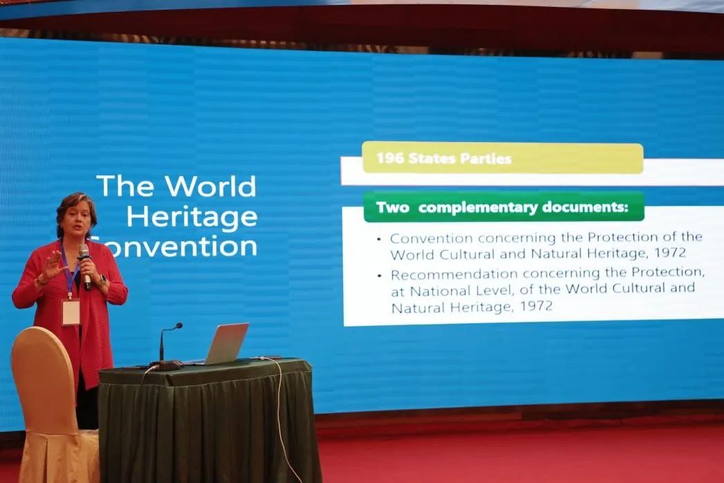 WHITR-AP上海分中心特别顾问龙淼以“认识世界遗产:概述、历史、定义和基本概念”为主题,聚焦世界遗产定义、发展历史以及申报流程。她介绍了联合国教科文组织(UNESCO)的起源及其在科学、教育和文化领域的职责,以及1970年代《世界遗产公约》制定的背景和公约内容。她提到,“遗产”定义因社区差异而具挑战性,因此ICCROM、ICOMOS、IUCN等机构提供咨询、提名协助及能力建设。她还详细地介绍了世界遗产提名与申报的流程,以及可能面临的问题,并且为学员提供了实用的最新官方信息来源。