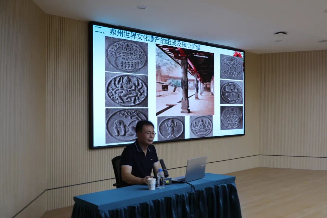 下午,工作坊全体人员前往泉州海外交通史博物馆参观并参与讲座。泉州市文化广电和旅游局二级调研员出宝阳对泉州境内的文物资源概况进行介绍,并说明了泉州系列世界遗产的组成与核心价值、遗产保护和利用情况。