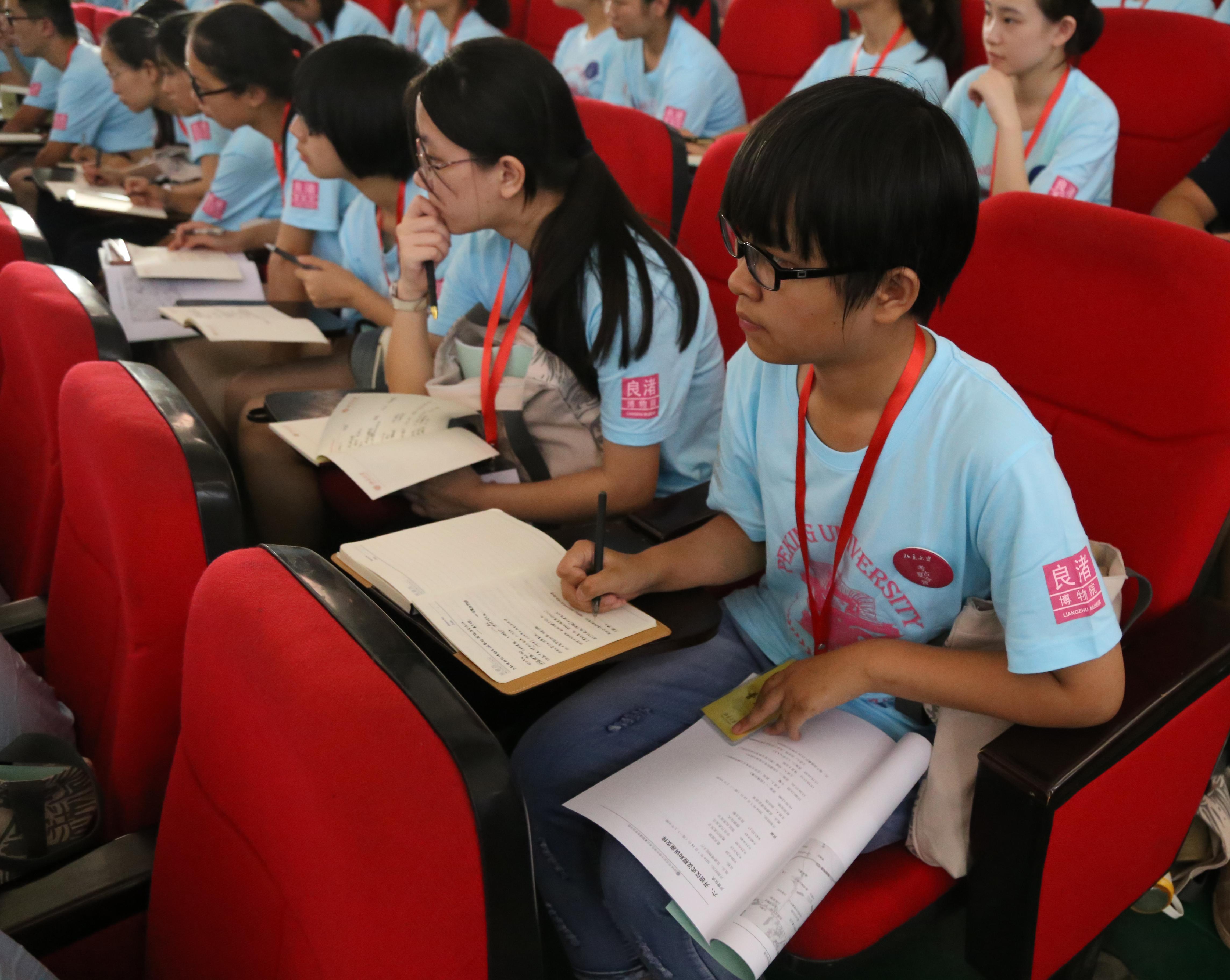 合影完毕,大家奔赴良渚中学。在这里,我们首先将进行本次考古暑期课堂的开学典礼。还未走进会场,一阵悠扬的歌声就已经把学员们吸引住了。“红楼飞雪,一时英杰,先哲曾书写,爱国进步民主科学……。”对,这便是每一个北大人都耳熟能详的《燕园情》,动听的旋律,激昂的歌词,瞬间就把大家带到了燕园,博雅塔下,未名湖畔,你我共歌,乐哉悠哉。