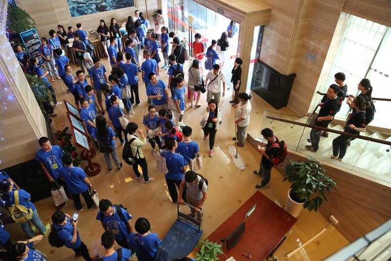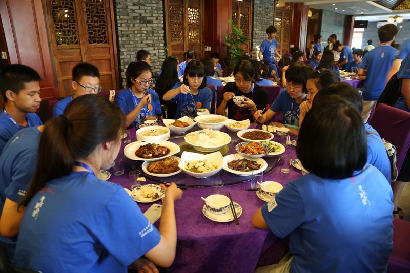 早上七点,营员们着统一的蓝色营服,佩戴营员证和徽章,有序的在餐厅二层自助用餐,大家谈笑风生,完全没有报到当天的陌生感,第一天就这样和谐的开始了。