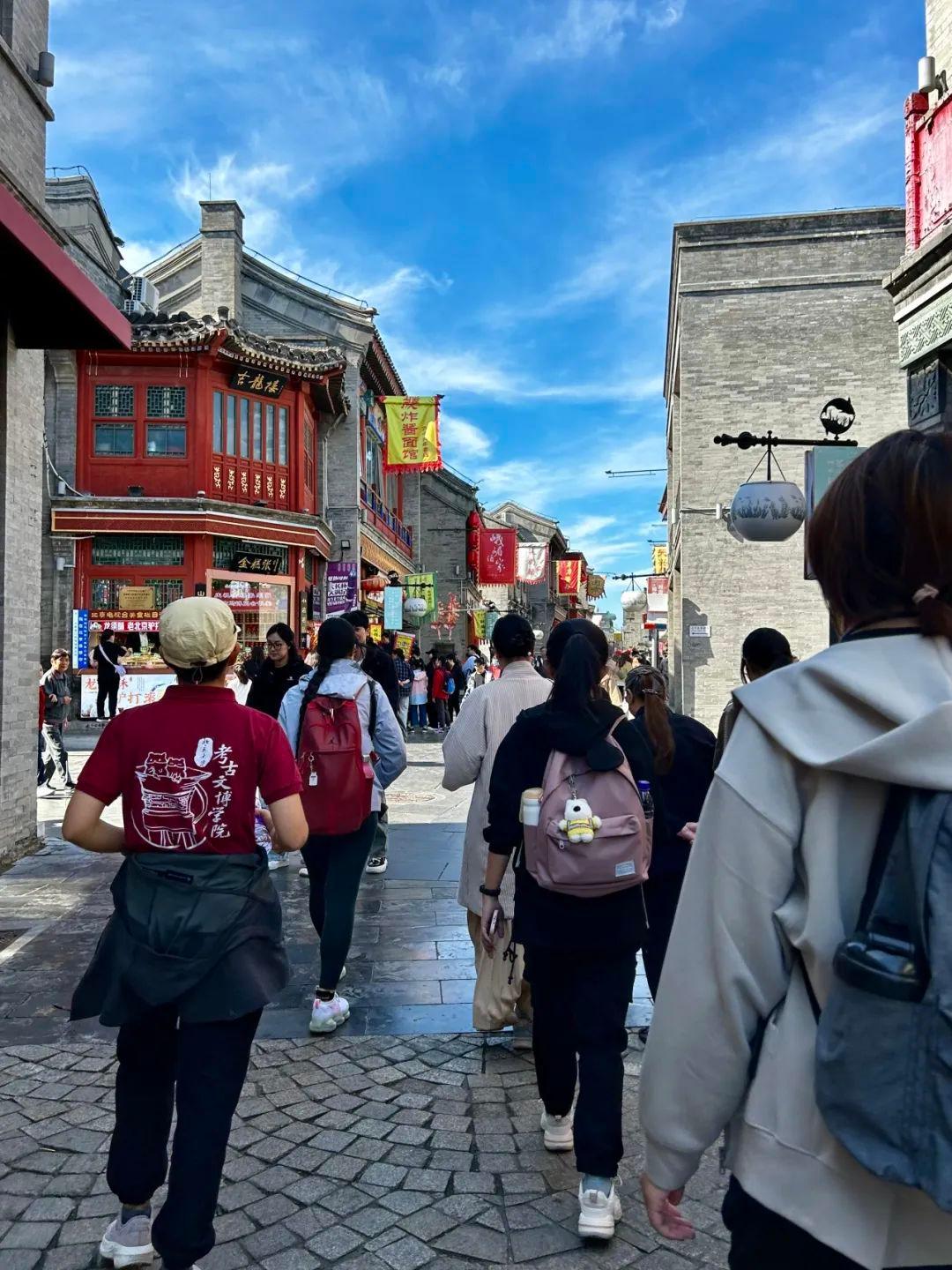 随后,同学们迈着轻盈的步伐,于北京的小巷中穿行,也一并穿越了岁月的长廊。街巷市井,烟火可亲。午餐时刻,同学们围坐一堂,欢声笑语,感情进一步升温。用餐完毕后,师生乘坐公共交通返校,本次中轴线之旅正式结束。