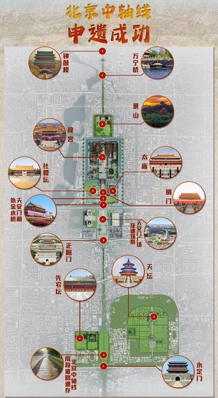 北京中轴线全长7.8公里,由15处遗产构成要素组成