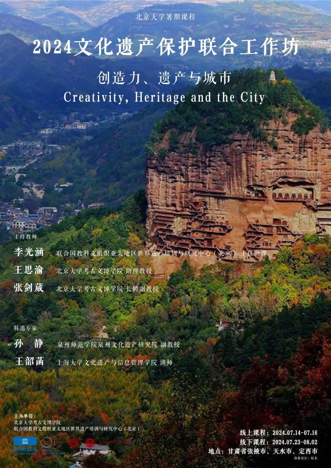 2024年文化遗产保护联合工作坊williamhill官方网站暑期公司由williamhill中文和联合国教科文组织亚太地区世界遗产培训与研究中心(北京)联合主办,组成集社会学、文化产业、经济、人文地理、规划、文化遗产、博物馆等为一体的综合团队,将前往甘肃省进行实地调研,在教师指导下调查张掖市、天水市、麦积区、通渭县、临洮县五个区域的文化资源和文化创意产业,并基于实际调查和联合国教科文组织与世界银行共同制定的“城市、文化与创意”(CCC)框架制定甘肃省文化和创意产业的政策指南。