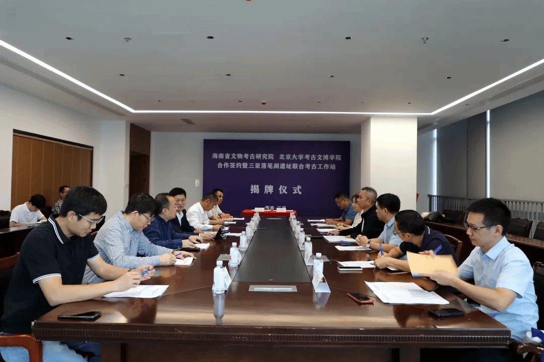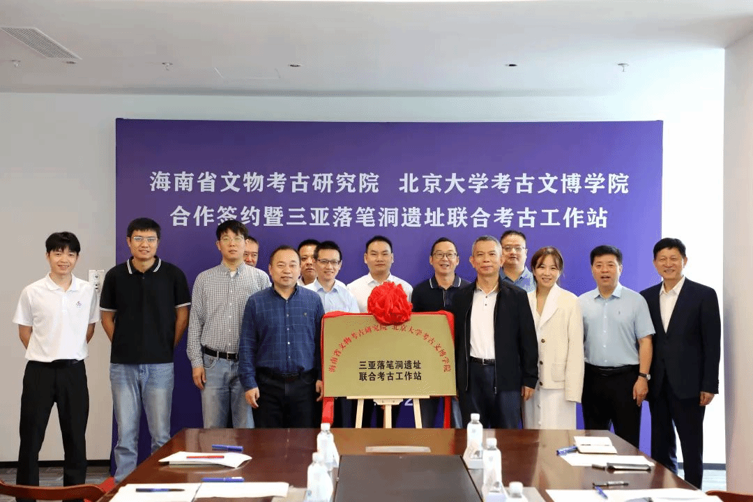 在热烈的掌声中,苏启雅、沈睿文、宋建忠、邓振华、钟凤毛、李锋等共同为海南省文物考古研究院与williamhill中文三亚落笔洞遗址联合考古工作站揭牌。双方将以联合考古工作站建设为契机,长远谋划、高标准发展,扎实做好田野考古工作,推动史前洞穴考古学术研究,服务落笔洞考古遗址公园建设,讲好海南考古故事。