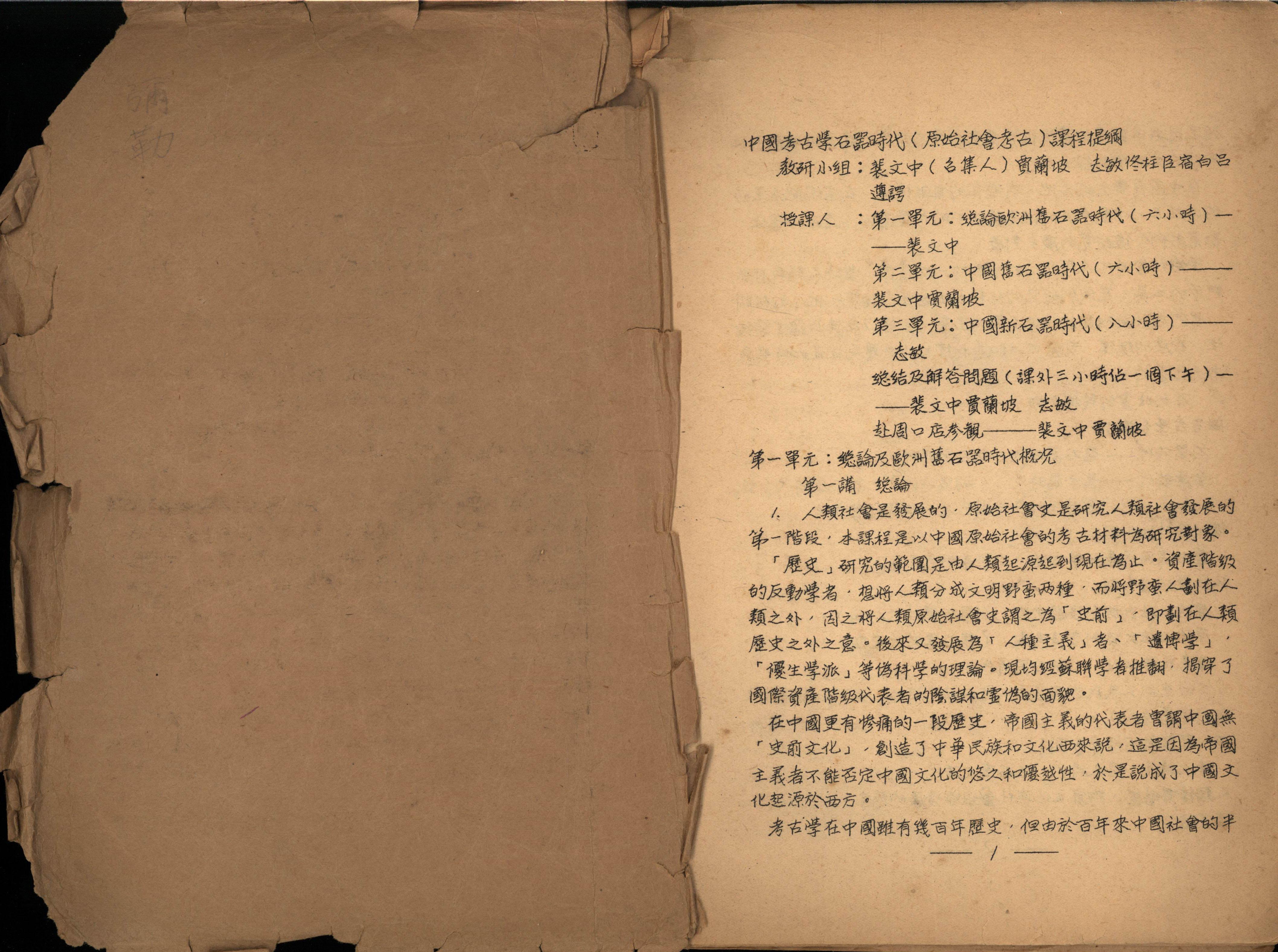 高志喜 1954年裴文中讲授旧石器时代考古笔记